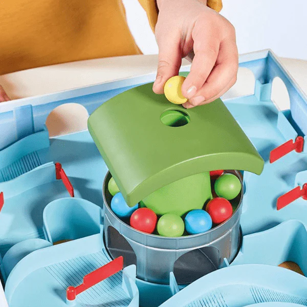 You might send Hammy in, but there’s no telling who he’ll bring a food pellet out to! You get to keep all the food Hammy brings you, and the player with the biggest stash at the end wins. Restock the 12 food balls to watch Hammy race around his maze again!
